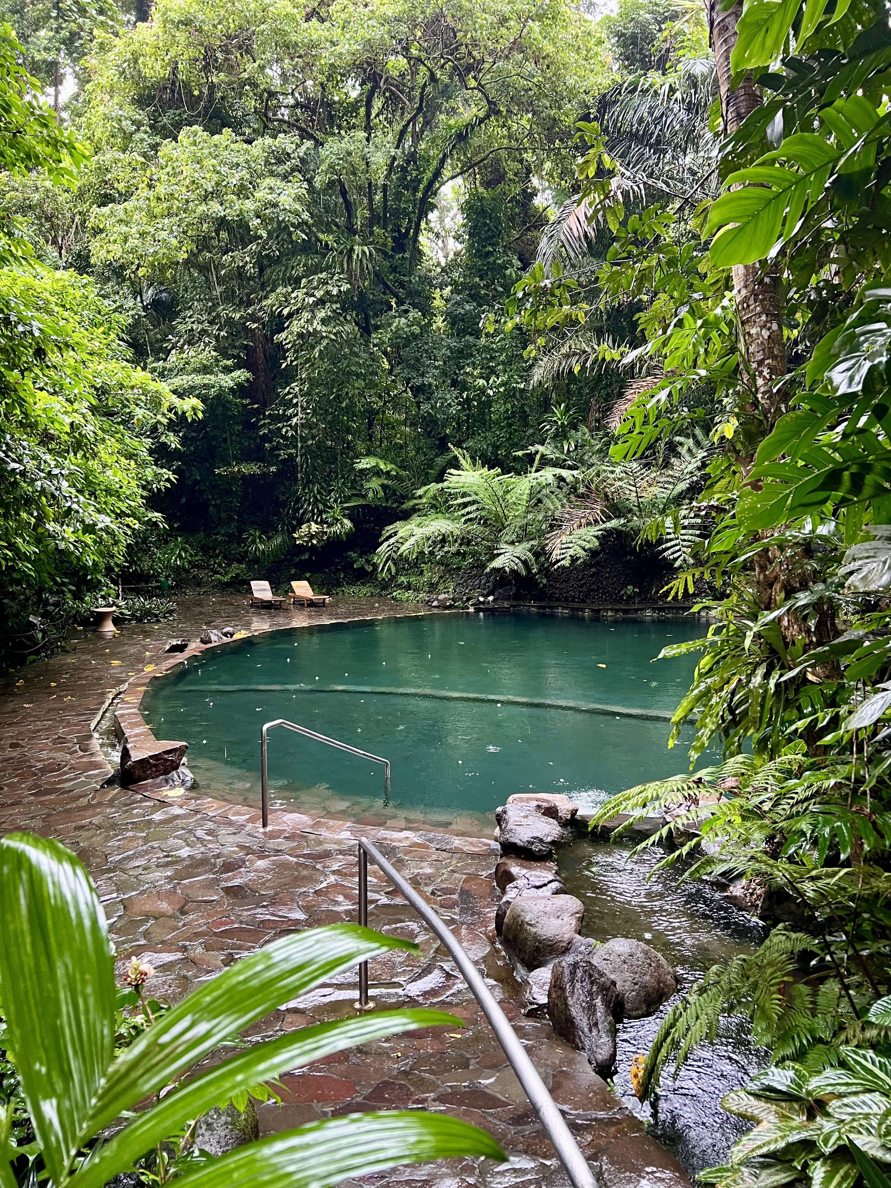 El resort es una maravilla, metido en mitad de la naturaleza, con una piscina de tipo infinity maravillosa para poderse relajar, y un restaurante con una comida buenísima. Además, los dueños tienen diez perritos que viven como dioses en las instalaciones del hotel, súper buenos y muy amigables con los clientes.