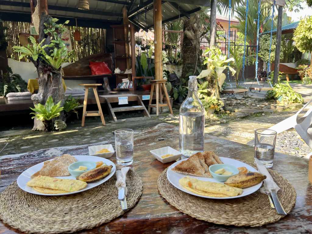 En Puerto Princesa, nos alojamos en el Hotel GreenSpace, recomendados por el blog «Viajarporfilipinas». Un hotel con habitaciones enormes, comodísimo, cerca de aeropuerto, y que ofrece desayuno en una zona de cafetaría que tiene abajo en el jardín.