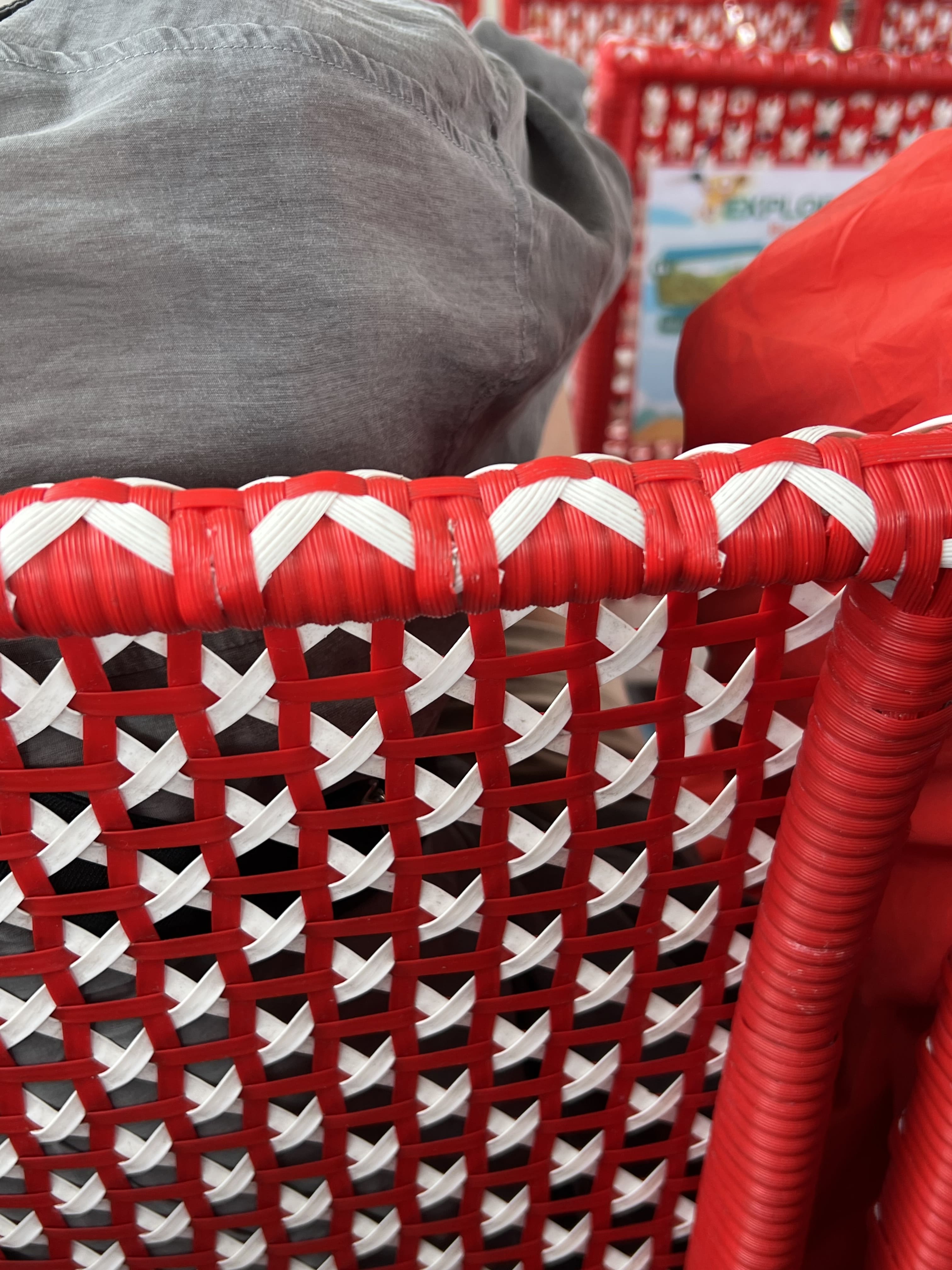 • En las farmacias, que suelen ser supermercados grandes, hay sillas en filas de cuatro para esperar tu turno para pagar.